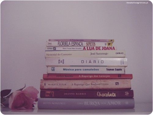 Encontrei esta tag no Bookporn e fiquei com vontade de ir á estante pegar em alguns livros...Eu gosto de tirar livros ao calhas das prateleiras, folhear e procurar passagens que tenha sublinhado. É algo que sempre me acalma. Decidi escolher alguns que marcaram mais, especialmente quando era mais novita. Tenho alguns destes livros de quando era miúda remetidos para o fundo da estante por falta de espaço e ás vezes esquece-mos deles...Tadinhos. Quem quiser esteja á vontade para fazer, como sempre. Assim,sem nenhuma ordem em particular: