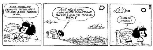 O que eu gosto mesma na praia é de andar na água: mergulhar, nadar à cão, chapinhar...essas coisas (daí não gostar de ondas). O problema é o tempo que tenho de estar na areia: aborrece-me. É claro que levo livros e música, mas ao fim de duas horas já estou farta disso tudo...É um mistério para mim como é que as pessoas conseguem ficar deitadas na toalha sem mexer por horas...