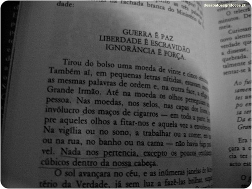 Em sequência deste post sobre livros e liberdade lembrei-me que está a decorrer na América até dia 28 de Setembro, a semana dos livros banidos (Banned Books Week) cujo o objectivo é celebrar a liberdade de ler, a liberdade intelectual e de acesso á informação. Este blog, obviamente até por que não existem fronteiras quando se fala de valores universais, apoia a iniciativa e incentiva todos a pegarem em algum livro banido se tiverem á mão ou a reler caso não tenham nenhum em lista de espera...Há mesmo muito por onde escolher. O último que li foi o Não Matem a Cotovia da Harper Lee banido algures por linguagem imprópria, cenas violentas e por promover o racismo.