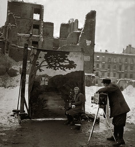 ("fotógrafo usa o seu próprio background para esconder as ruínas da guerra